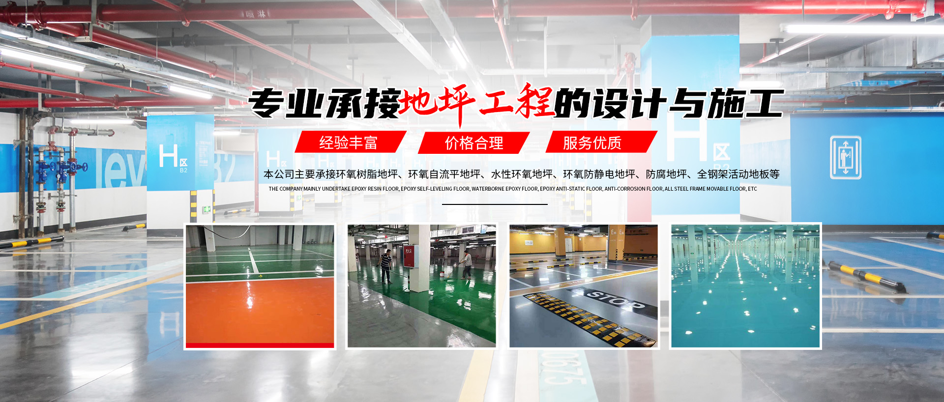 本公司主要承接環氧樹脂地坪、環氧自流平地坪、水性環氧地坪、環氧防靜電地坪、防腐地坪、全鋼架活動地板、PVC地板、運動場地坪、密封固化劑地坪、耐磨硬化劑地坪工程、交通設施工程設計與施工。 經過多年的實踐和探索積累了豐富的知識和施工經驗,為客戶提供量身定制的設計及施工方案。多年來,公司憑借不錯的服務及品質為眾多優秀企業提供了建設配套服務或施工。后我們將繼續秉承“以客為先,競合雙贏”的價值觀,為廣大需求群體提供最優的產品。本公司將會以合理的價格、